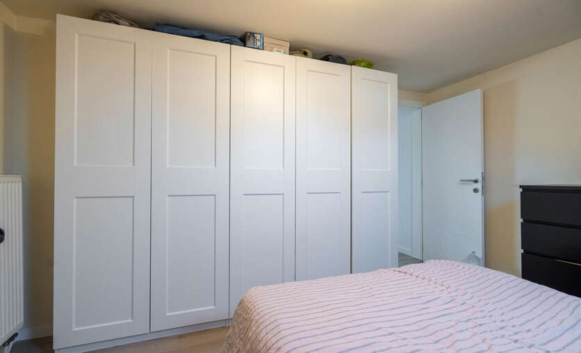 Via de open trap in de leefruimte komen we tot slot op de 1e verdieping waar we de 2 slaapkamers terugvinden.