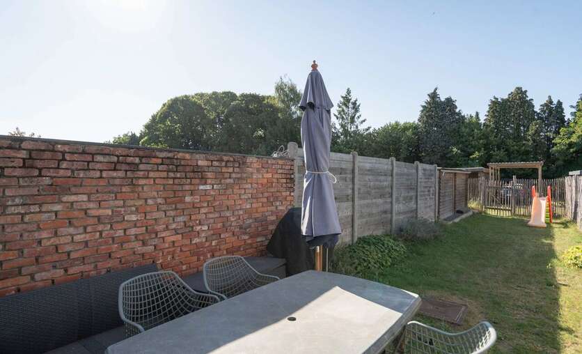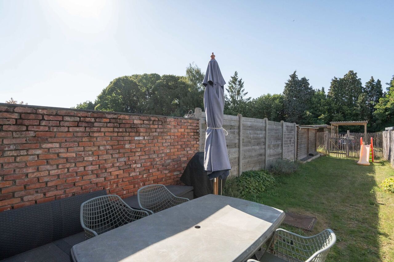 In de tuin genieten we van een aangenaam terras.