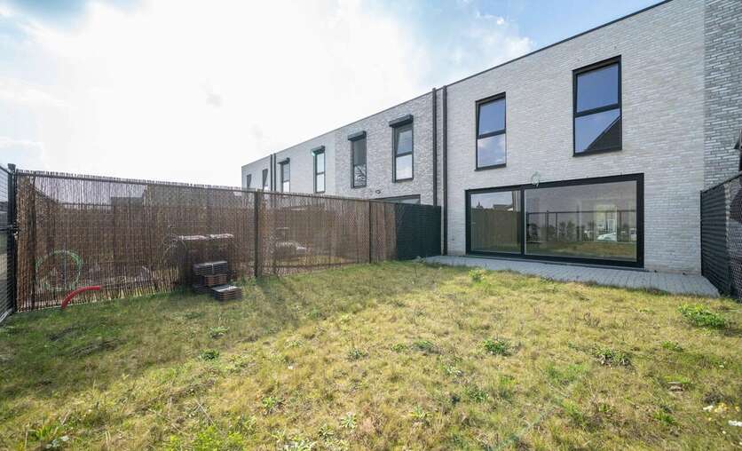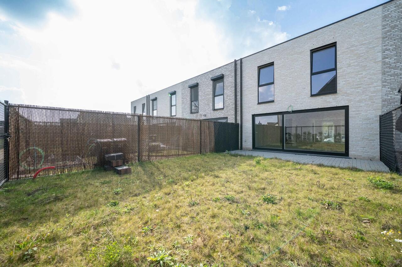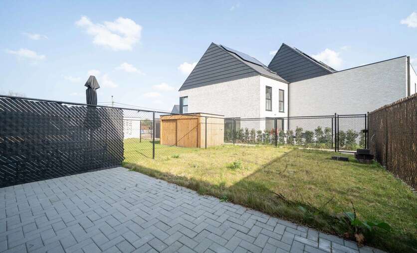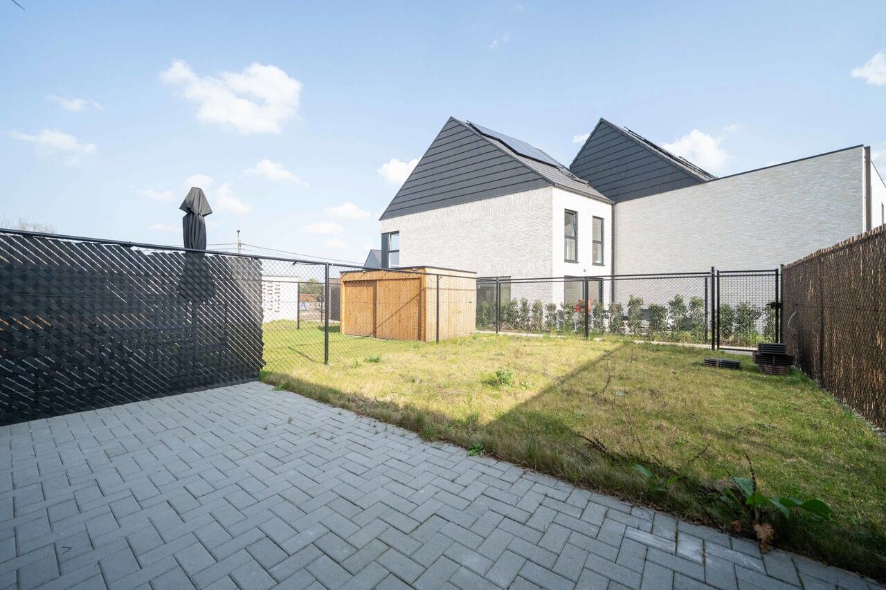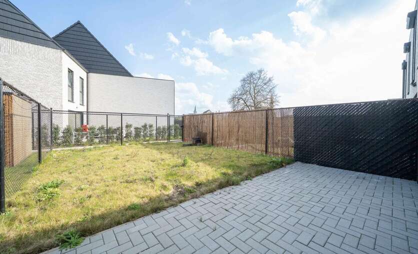 Prachtige tuin, volledig omheind en terras reeds aangelegd.