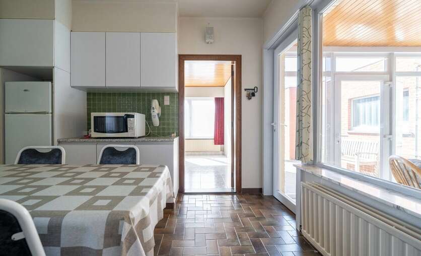 Aansluitend vindt u de keuken, met directe verbinding naar de veranda, een aangename extra leefruimte met zicht op het terras.