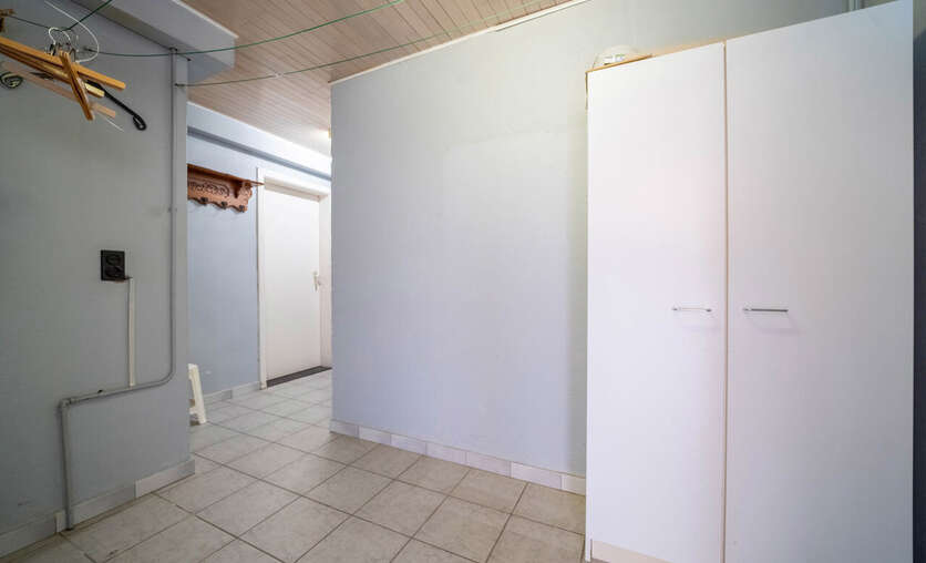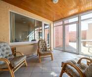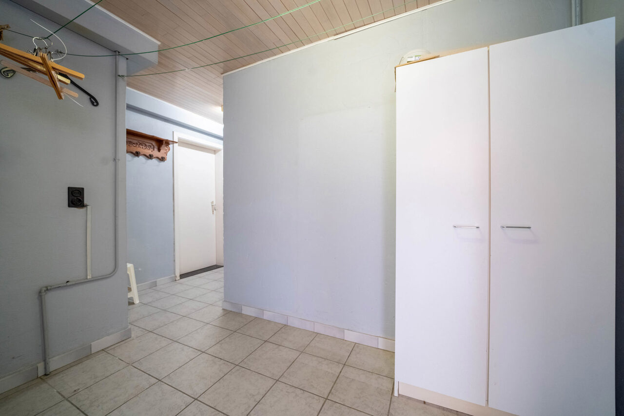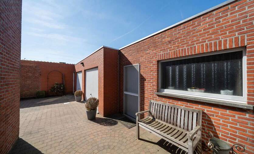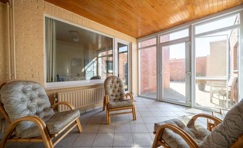 De veranda geeft bovendien toegang tot een praktische berging, de badkamer en de dubbele garage, die zorgt voor extra comfort en opbergruimte.
