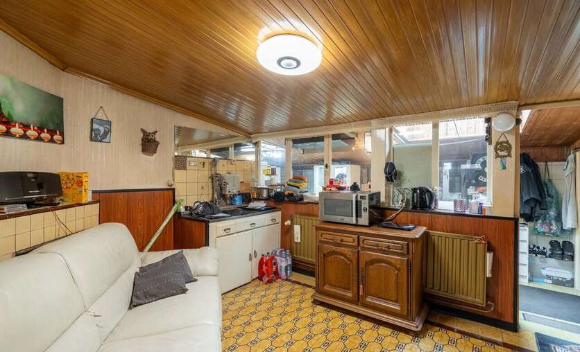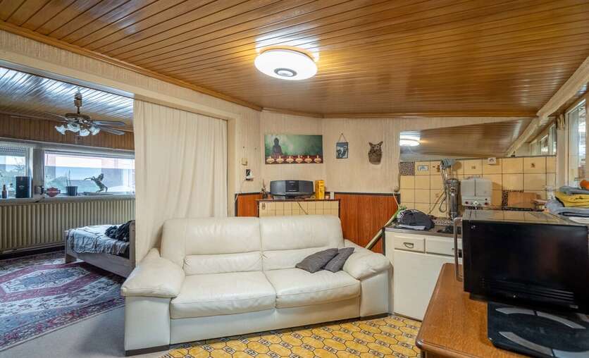 De laagbouwwoning is voorzien van een aangename leefruimte met zithoek en aansluitend de keuken/eetkamer.