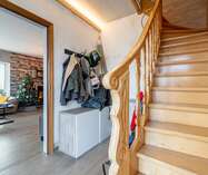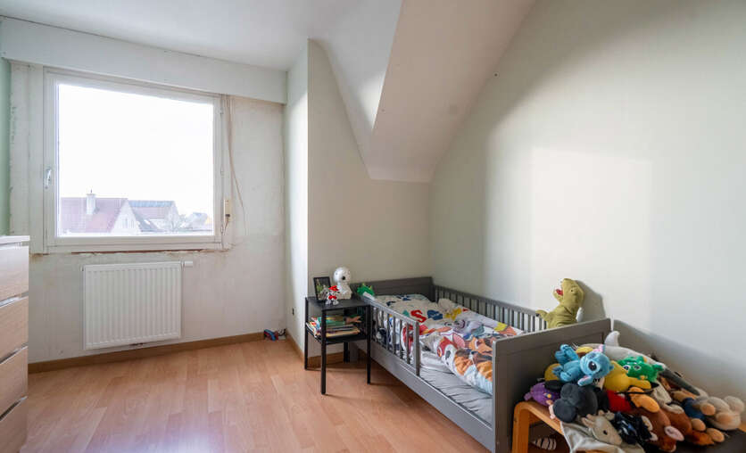 Terug in de hal komen we via de trap tot de bovenverdieping waar er drie ruime slaapkamers aanwezig zijn, allen voorzien van rolluiken.