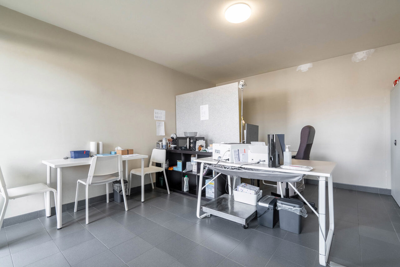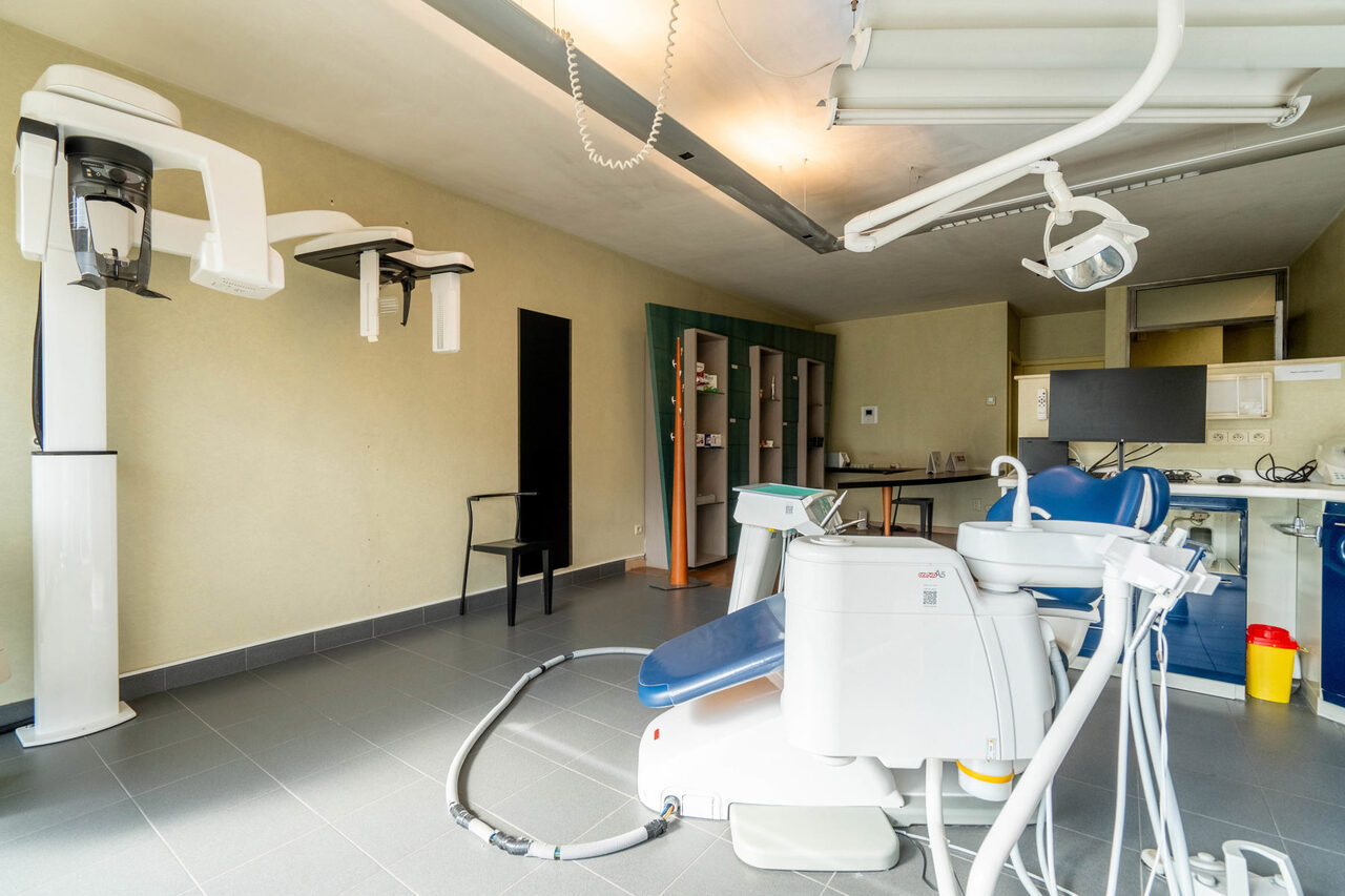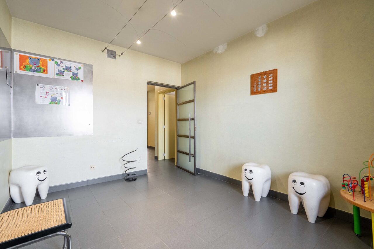 Pal in het centrum van Heist-op-den-Berg vinden we dit kantoor met praktijk, gelegen op het gelijkvloerse verdiep van een appartementsgebouw.