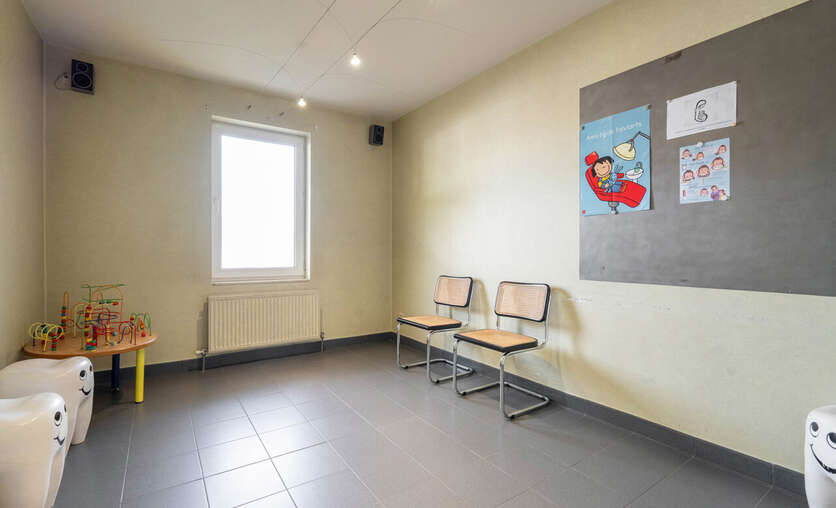We komen terecht in de onthaalruimte of wachtzaal, tevens voor zien met apart sanitair.